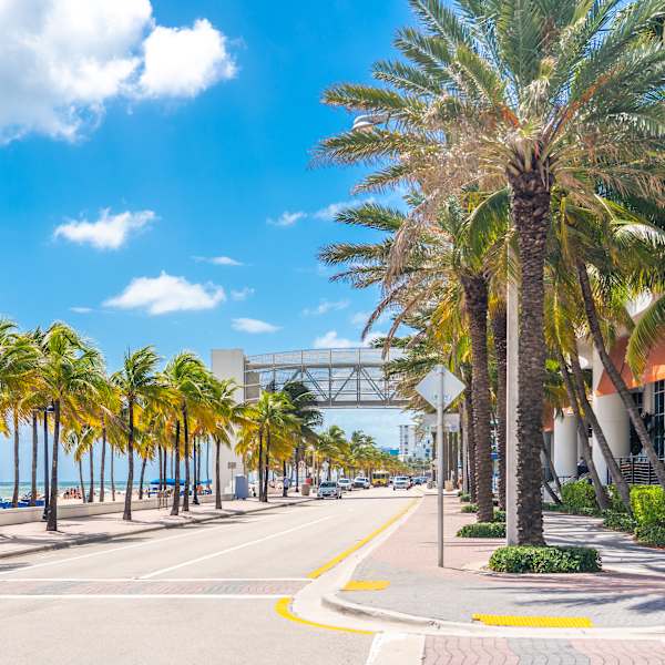 Known as the "Venice of America," Fort Lauderdale features 266 kilometres of inland waterways lined with yachts and mansions, plus over 37 kilometres of Atlantic shoreline. Located just north of Miami, this Florida destination enjoys more than 300 sunny days annually.