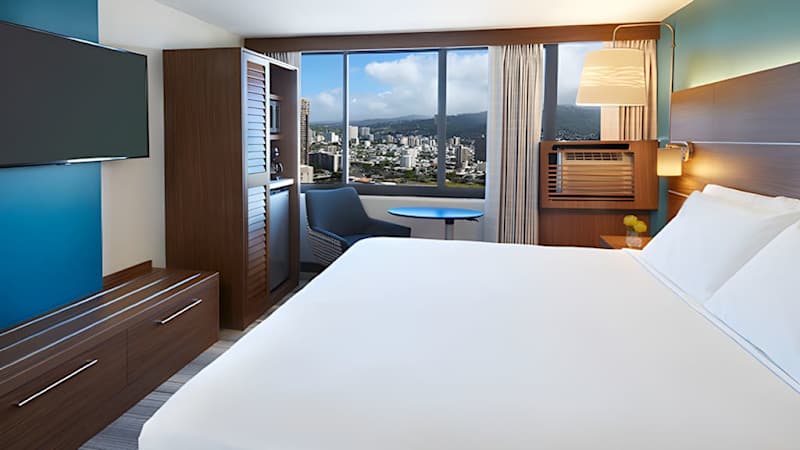The Holiday Inn Express Waikiki is located at the gateway to Waikiki. This 44-story hotel with panoramic views of the Pacific Ocean, Koolau mountains and Waikiki skyline is just three blocks to Waikiki Beach and four blocks to the Hawaii Convention Center. Conveniently located near shopping, dining and activities.