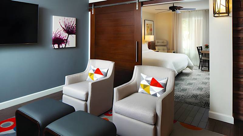 Southern California's magnificent mountain ranges serve as the breathtaking backdrop for Marriott's Shadow Ridge II-The Enclaves, a premium vacation ownership resort in Palm Desert, CA. Comfortable guest rooms and spacious one- and two-bedroom villa rentals overlook the rolling fairways of the onsite championship Shadow Ridge Golf Club and the sparkling lakes weaving throughout the Palm Desert landscape. Beautiful villas feature a master bedroom with a king-size bed while the separate living and dining areas and fully equipped kitchen offer convenience and comfort. Enjoy free Wi-Fi and no resort fees during your stay. Play a round of golf on the resort course and then relax with a bite to eat at the Grill at Shadow Ridge or one of the poolside bars. Resort amenities include multiple outdoor pools, whirlpool spas, a children's pool and waterslide, tennis courts, activity center and game room and a 24-hour fitness center with steam room and sauna.