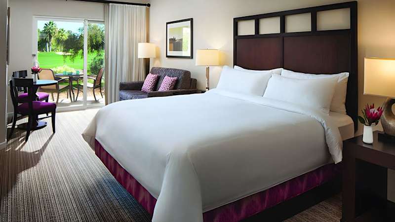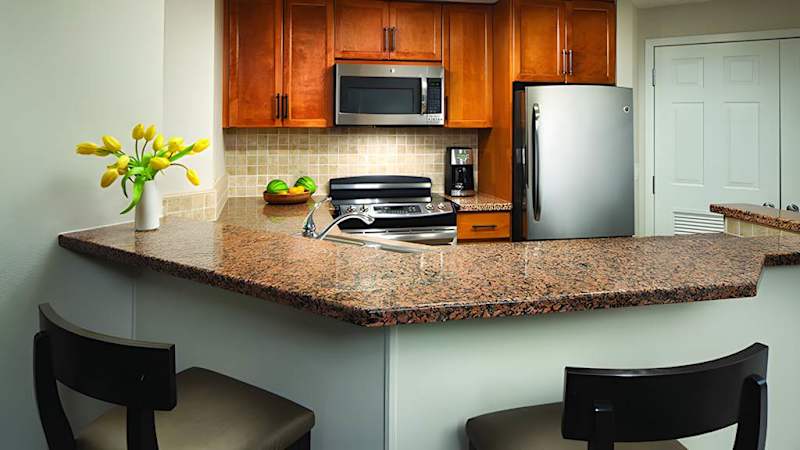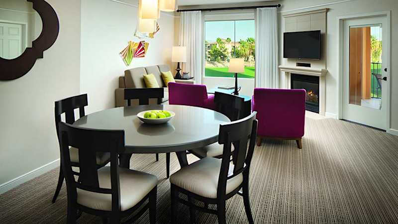 Work on your swing and tee off from the Shadow Ridge Golf Club. Take a cooling dip; this resort boasts four pools, an interactive water playground and a waterslide. Discover other resort activities such as the kids’ club, sport court and miniature golf. Grab a bite to eat or a refreshing beverage at one of the poolside bars, or stop by The Marketplace for a snack. After a full day in Palm Desert, unwind in a spacious villa with a full kitchen, separate living and sleeping areas, a flat-screen TV and a washer/dryer. Connect with friends and family during your vacation using complimentary Wi-Fi. Find tranquility at Marriott’s Shadow Ridge I-The Villages