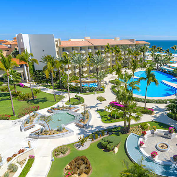 GR Solaris Lighthouse is a first-class hotel located on the Sea of Cortez in San José del Cabo. It offers 350 luxury rooms and suites equipped with all the amenities, private balconies, and beautiful views, some of them overlooking the sea.