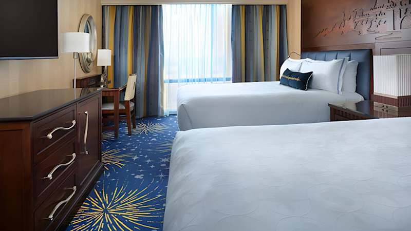 Pourquoi ne pas faire durer le plaisir? Cet hôtel légendaire plonge les clients dans l'ambiance nostalgique du Parc Disneyland d’origine et les inonde de la magie de Disney, même quand ils sont dans leur chambre! Les chambres offrent des touches magiques de l’univers de Disney, notamment une tête de lit éclairée sur les motifs du château de la Belle au bois dormant, jetant un peu de poussière magique sur tous les clients. L’Hôtel Disneyland de 973 chambres est un classique de Disney. L’hôtel vous propose également de danser et de manger en compagnie de vos personnages préférés au Goofy’s Kitchen.